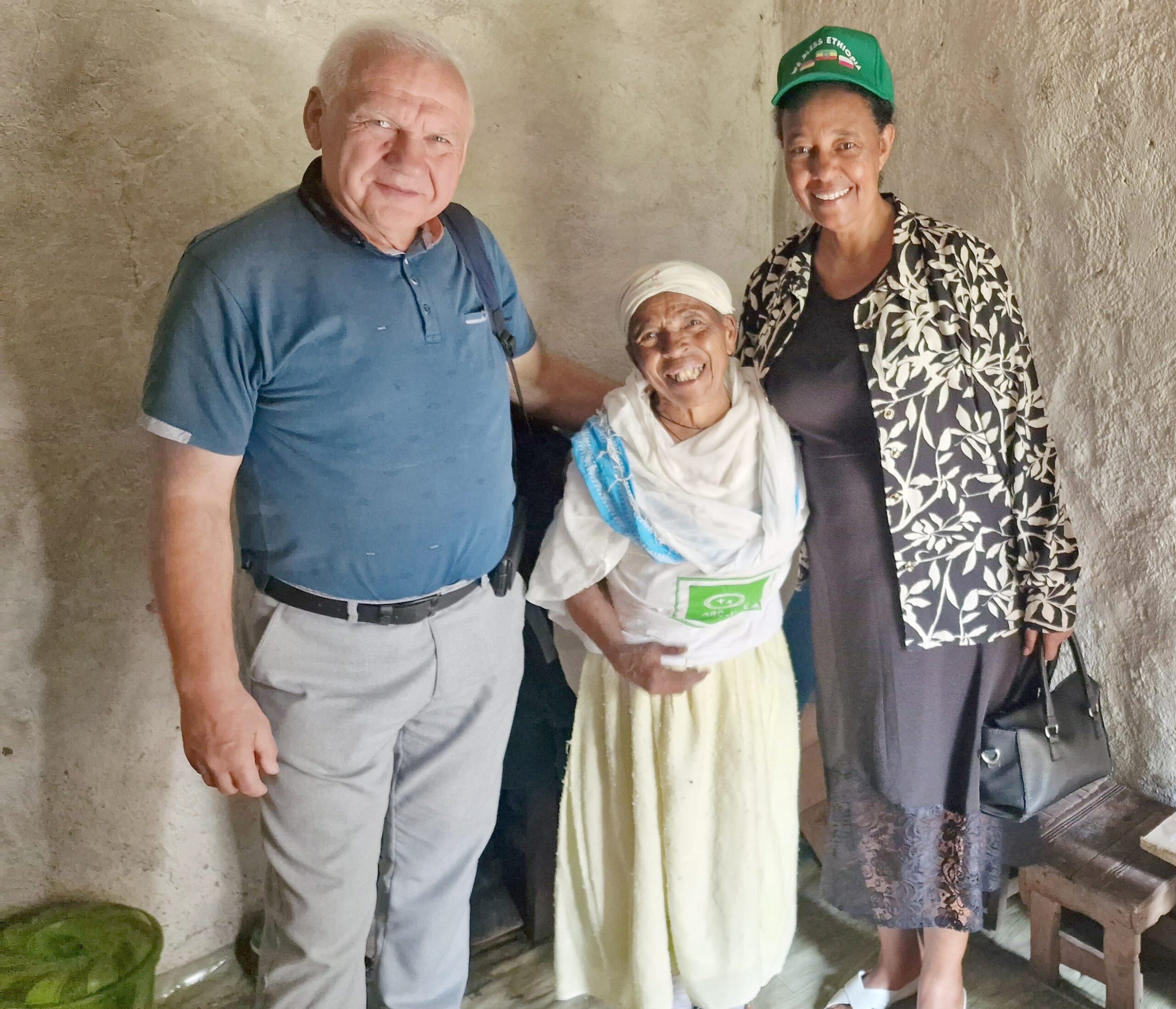 Roman Jawdyk (Bischof aus Polen) & Betreuerin Frau Zeweditu (re) mit einer Frau, die vollständige Hilfe aus der Organisation erhält