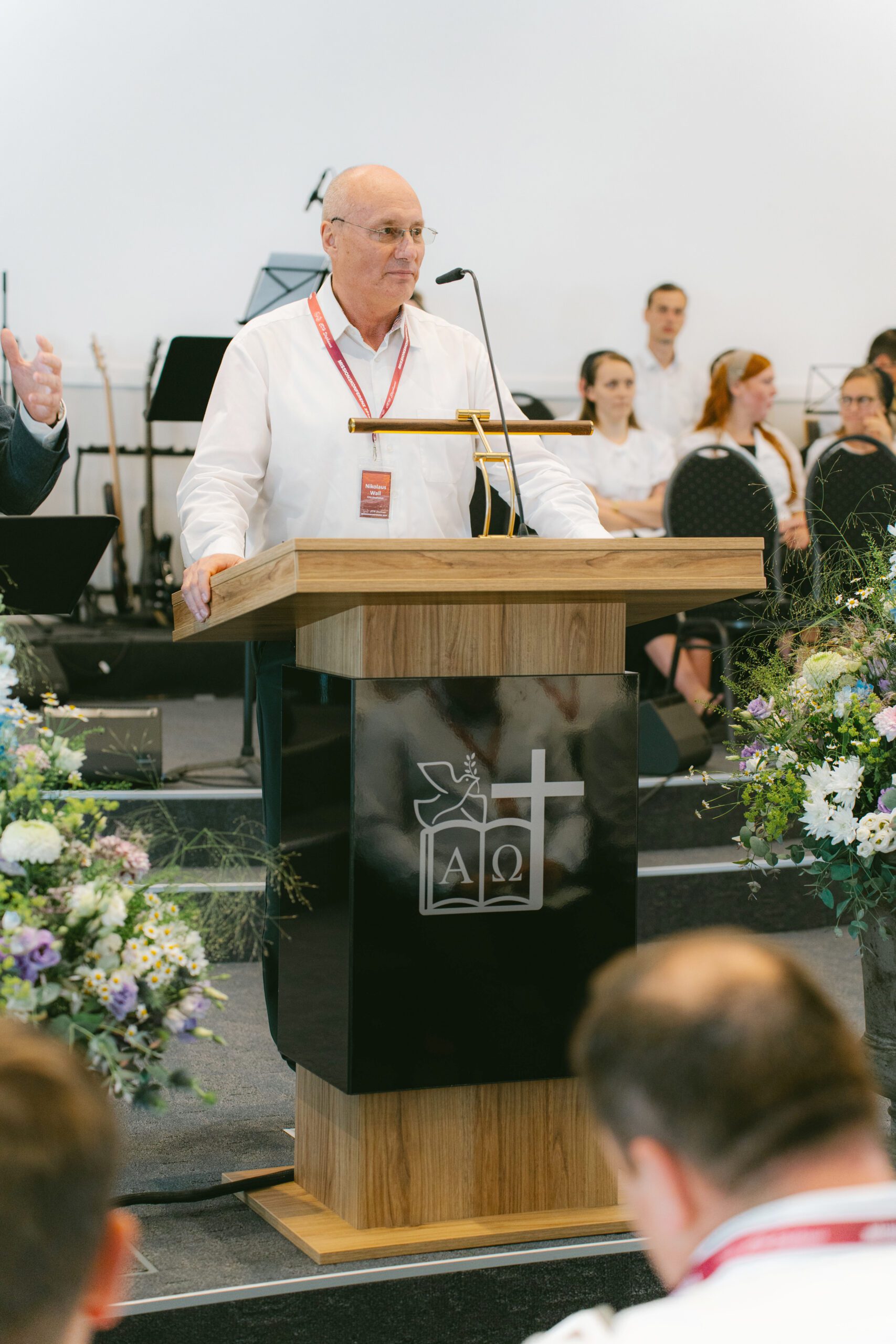 Nach weiteren Berichten sprach Viktor Witt, Pastor aus Cloppenburg, das Schlusswort. Er betonte, wie wichtig es sei, in der Tat – also ganz praktisch – zu lieben. Das beginne zu Hause, indem Eltern ihren Kindern bewusst Zeit schenken, solange diese noch im Elternhaus leben. Jeder hat im Alltag seine Möglichkeiten, Liebe zu zeigen. Und wie Jesus sollten wir immer den ersten Schritt tun – und nicht darauf warten, dass er von außen kommt.